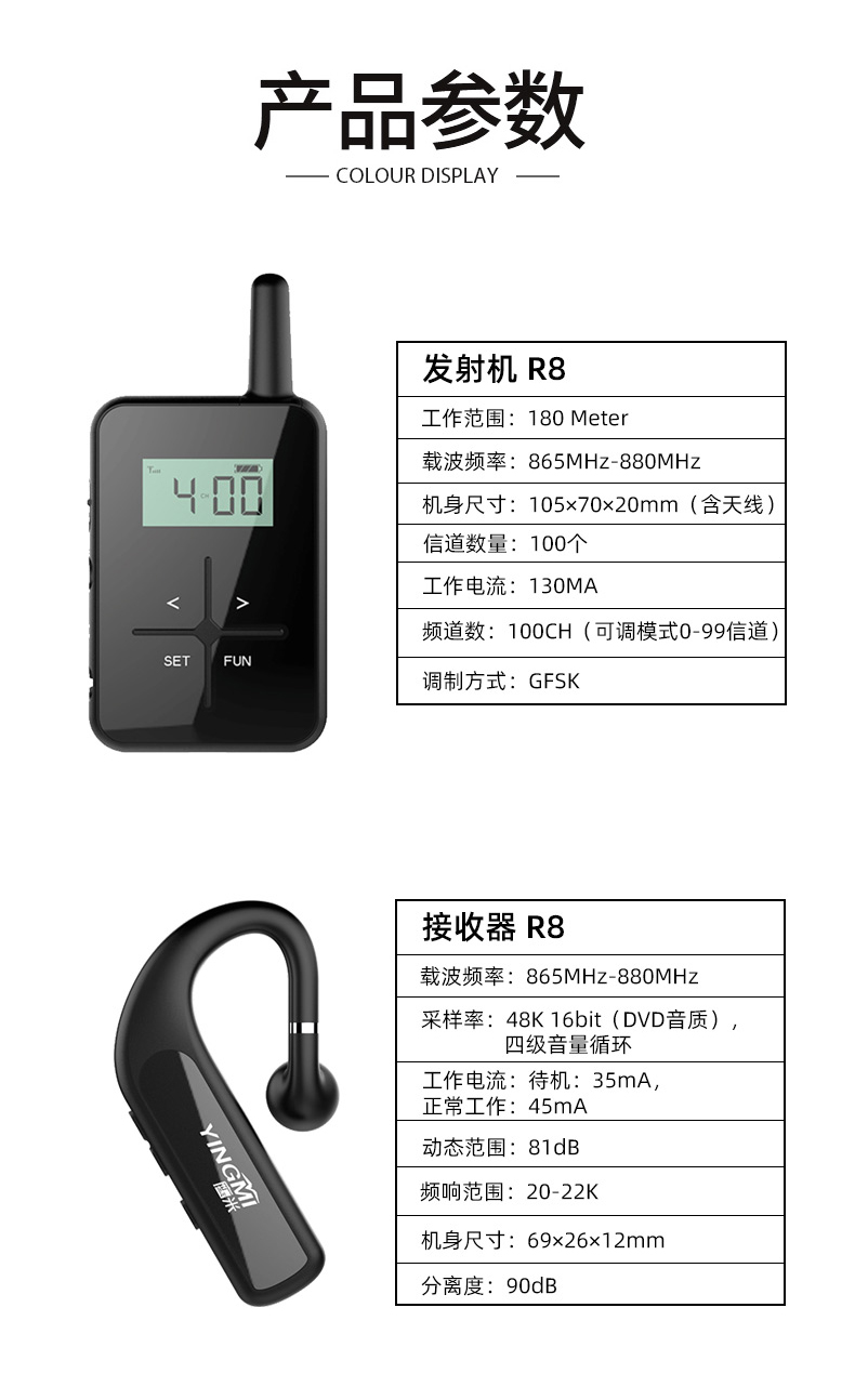 讲解器一对多R8无线讲解系统蓝牙式耳机导游带团工厂博物馆参观教学培训导游讲解器